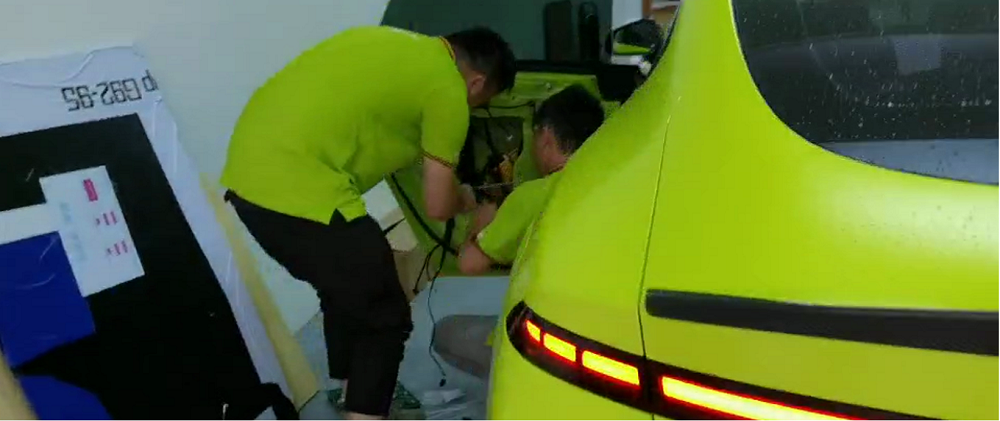 2021年5月13日,深圳市興嘉林電子科技有限公司改裝車間內(nèi)一片繁忙景象。今日兩名車主喜提小鵬P7鵬翼版新車,該車因為擁有炫酷的鵬翼門(俗稱剪刀門),受到市場上廣大新能源汽車愛好者的追捧。四名工程師一起工作,為這兩臺小鵬P7鵬翼版新車升級后門的電吸門。在升級完成后,小鵬P7鵬翼版新車將更炫、更酷、更加具有科技感。